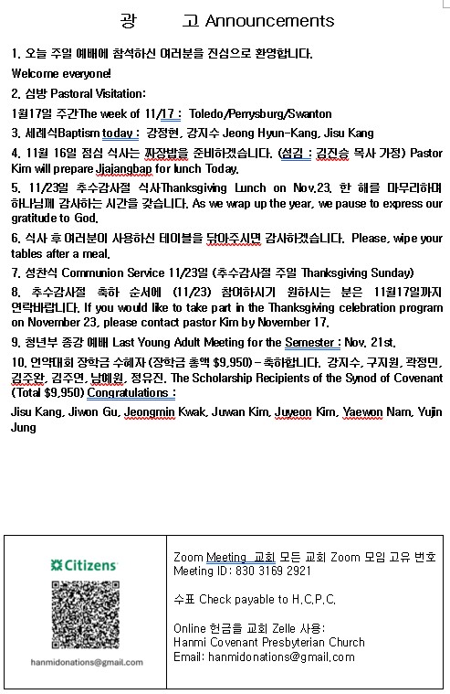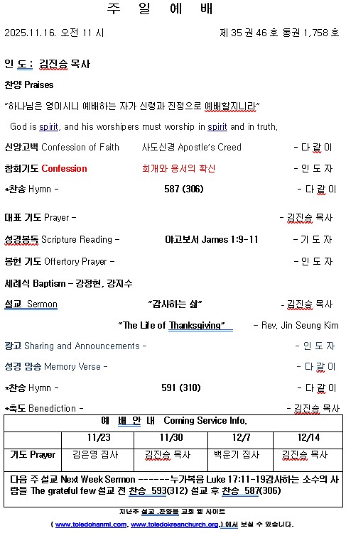 11/16/2025 주보 admin November 15, 2025 주보 0 Comments Tagged 11/16/2025 주보 Post navigation Previous Previous post: 상록회 외부 식사.. 11.12.25Next Next post: 11/15/25 오늘의 양식 Leave a Reply Cancel replyYour email address will not be published. Required fields are marked *Comment * Name * Email * Website Save my name, email, and website in this browser for the next time I comment.